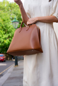 Please note, the shade of our tan Rosa tote may vary depending on the light under which the product is under.