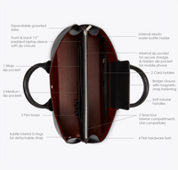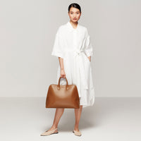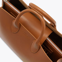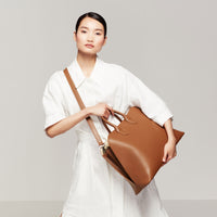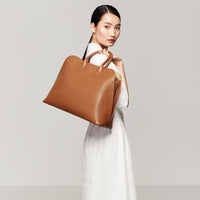 This generously sized top handle tote is simple yet sophisticated. With its padded zipped laptop compartment and multiple pockets for organisation, it’s equipped with the same thoughtful details as our other pieces to accommodate all your daily essentials. The soft top handles and detachable adjustable shoulder strap offer multiple wearing options providing versatility of style and use. We’re sure that the minimal design, practical details and roomy silhouette of this bag will make it destined to become your daily carryall.